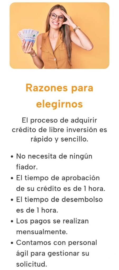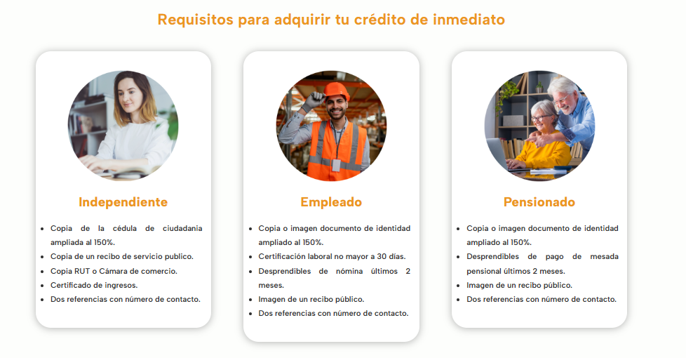 Solicita tu crédito Escríbenos ahora aquí! Contáctanos aquí! Obtener crédito aquí! Crédito Inmediato en Colombia, sin papeles, aplica para reportados Indícanos los siguientes datos y un asesor te contactará en minutos Nombre Celular Solicita tu crédito Escríbenos ahora aquí! Contáctanos aquí! Obtener crédito aquí! Obtener crédito aquí! ¿Cuánto dinero puedo solicitar?Realizamos nuestros planes de financiamiento acorde a las necesidades de nuestros clientes. Te prestamos desde $1.000.000 Consultar Tasa de InterésObtén una TASA FIJA MENSUAL del 1,8% Fijo y/o una TEA del 13%. Consultar Plazos de pagoPlazo de Devolución. Manejamos cuotas fijas mensuales que incluyen aporte a capital e intereses para que compres lo que desees. Plazo Mínimo 3 meses, Plazo Máximo 180 Meses. Consultar Solicita tu Crédito Conoce Más Prestamos en poco tiempo desde la comodidad de tu casa Consultar Consultar Consultar Requisitos para adquirir tu crédito de inmediato Consultar Consultar Consultar Clientes Satisfechos Clientes Satisfechos ¡Su Crédito Aquí! ¡Su Crédito Aquí! Contáctenos Telefono : 57 313 353 1242 Email : contacts@company.com Nuestros Horarios Lun-Vier 09:00 – 19:00 Sab-Dom 10:00 – 14:00
